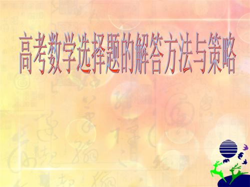利用題目給出的已知條件和選項提供的信息,從四個選項中挑選出三個錯誤答案,從而達到正確答案的目的。在答案為定值的時候,這方法是比較常用的,或者利用數值范圍,取特殊點代入驗證答案。