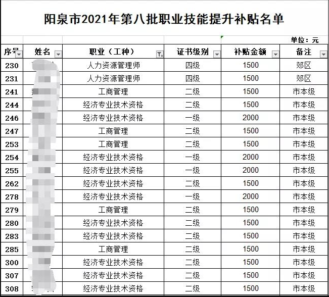 附件:陽泉市2021年第八批職業技能提升補貼名單