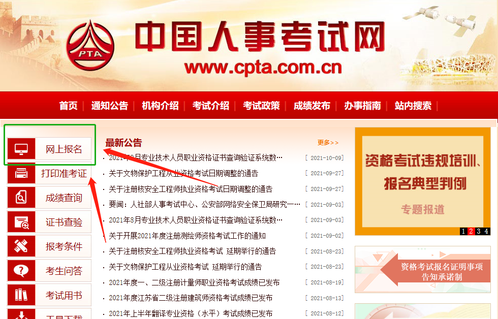 2022年一級建造師考試江蘇報名入口:中國人事考試網