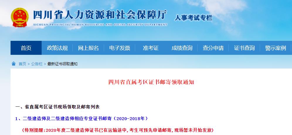 2020年四川二級建造師考試合格證書開始領取了嗎?目前的進度如何呢,根據四川人力資源和社會保障廳官網的信息可知:
