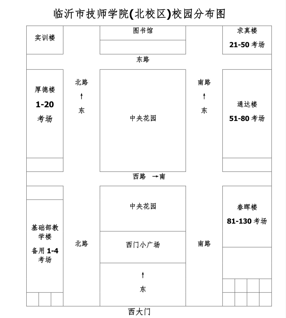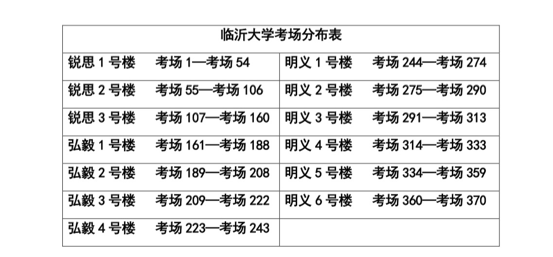 乘機動車自行前往各考點的考生,車輛嚴禁進入校園,送考人員和車輛應做到即停即走,嚴禁在考點入口處聚集。考場設在臨沂市技師學院(北校區)的考生,由臨沂市蘭山區通達路18號西門步行進入校園??紙鲈O在山東醫學高等??茖W校的考生,由臨沂市蘭山區聚才六路與濱河路交會處南門步行進入校園。因工業大道(濱河路-雙嶺路)正在進行道路施工,臨沂大學東1門、東2門關閉??紙鲈O在臨沂大學弘毅樓的考生,建議由臨沂大學西南門(雙嶺路和臨西九路交會處)步行進入校園,到達考點教學樓約需15分鐘左右??紙鲈O在銳思樓、明義樓的考生建議由臨沂大學南門(雙嶺路和宏大路交會處)步行進入校園,到達考點教學樓約需10分鐘左右。