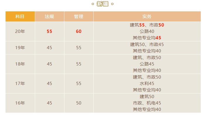 新疆二級建造師考試分數歷年合格標準匯總