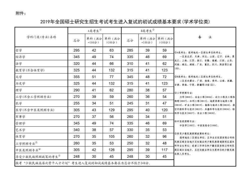 2019年全國碩士研究生招生考試考生進入復試的初試成績基本要求(學術學位類)