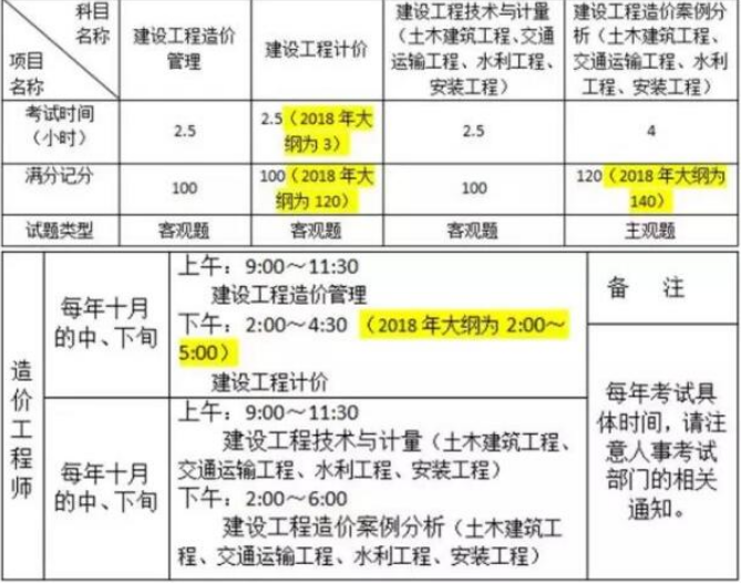 建設工程計價科目考試時間由3小時改為2.5小時。《建設工程造價管理》、《建設工程技術與計量》、《建設工程計價》科目的考試時間均為2.5小時,《建設工程造價案例分析》科目的考試時間為4小時。