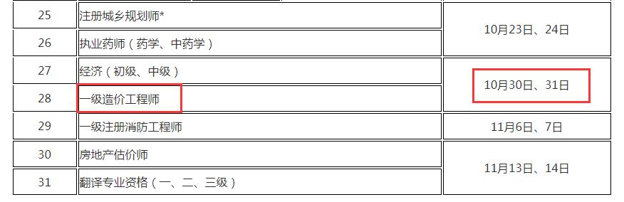 近日,2021年新疆專業技術人員職業資格考試工作計劃表公布,其中2021年新疆一級造價工程師考試時間為10月30日、31日,請考生牢記考試時間。具體詳情如下: