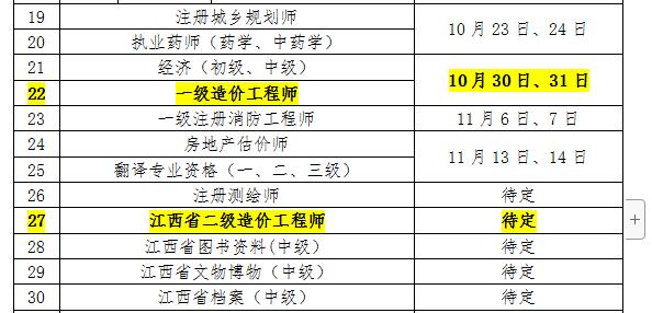 近日,2021年江西考務工作安排表公布,其中2021年江西一級造價工程師考試時間為10月30日、31日,請考生牢記考試時間。具體詳情如下: