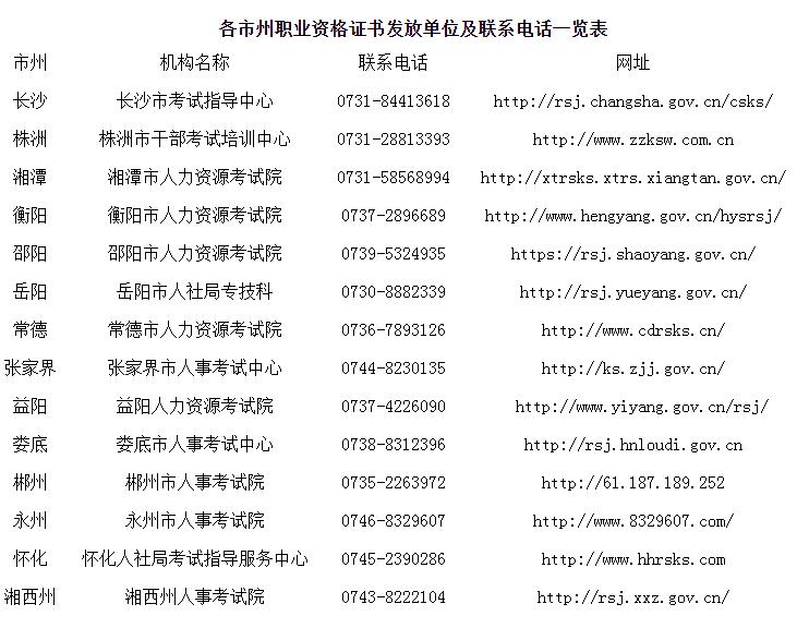 職業(yè)資格證書按屬地由各市州人力資源社會保障局人事考試機構(gòu)聯(lián)系快遞公司(郵政EMS)寄發(fā)給申請人,郵寄證書服務(wù)收費標準由各市州人事考試機構(gòu)確定。