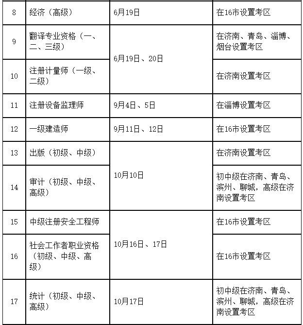 注:2021年如國家仍有需要我省組織實施的考試項目,待接到國家正式通知后,再進行安排部署。