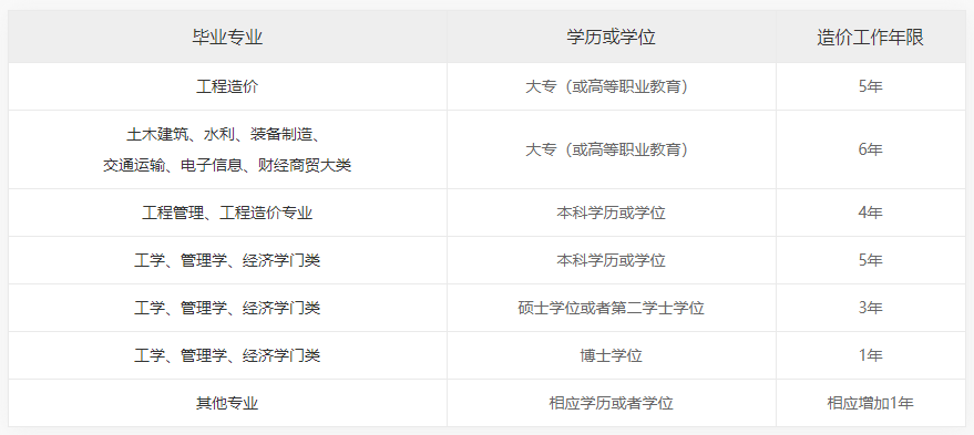 2、工作年限包括取得學歷前后的實際工作年限(實習期不能計算在內)。例如本科工程造價專業報考造價工程師,只要有本科學歷并且工作滿4年即可,并不需要取得本科學歷后再工作4年。