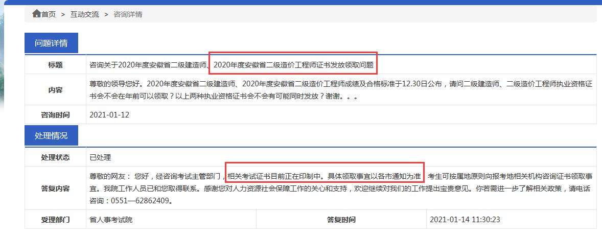 問:尊敬的領導您好。2020年度安徽省二級建造師、2020年度安徽省二級造價工程師成績及合格標準于12.30日公布,請問二級建造師、二級造價工程師執業資格證書會不會在年前可以領取?以上兩種執業資格證書會不會有可能同時發放?謝謝。。。