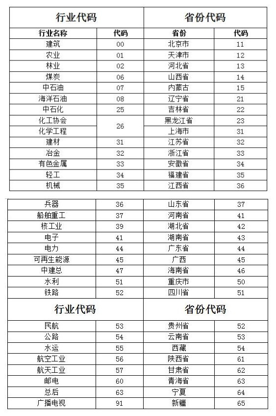 五、行業(yè)代碼和省份代碼對(duì)照表