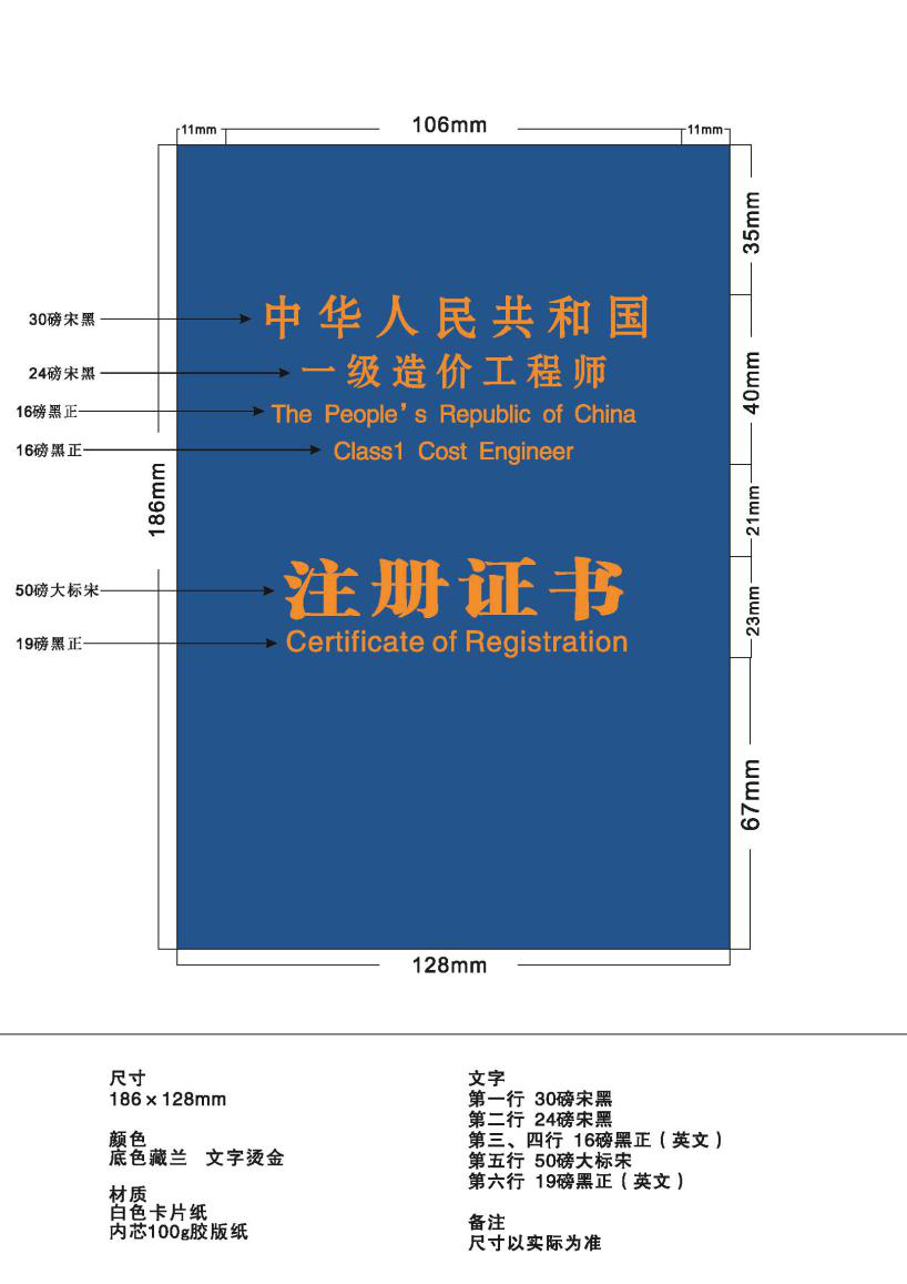 (一)一級(jí)造價(jià)工程師注冊(cè)證書(shū)樣式