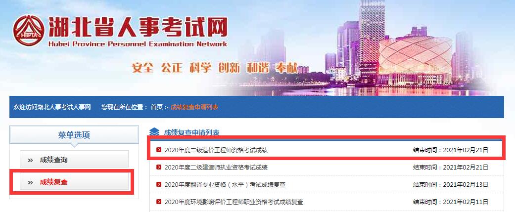 2020年湖北二級造價工程師成績查詢?nèi)肟陂_通,成績查詢時間:2021年1月21日起,對考試成績有異議的考生,可以申請成績復(fù)查。登錄湖北省人事考試網(wǎng)----成績復(fù)查欄目,仔細(xì)學(xué)習(xí)全國專業(yè)技術(shù)人員資格考試成績復(fù)查服務(wù)指南后網(wǎng)上提交申請。具體詳情如下: