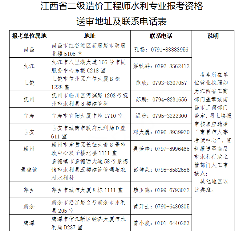 報考水利工程專業的應試人員按單位屬地將材料報送到各設區市水利行政主管部門人工審核點(附件7),